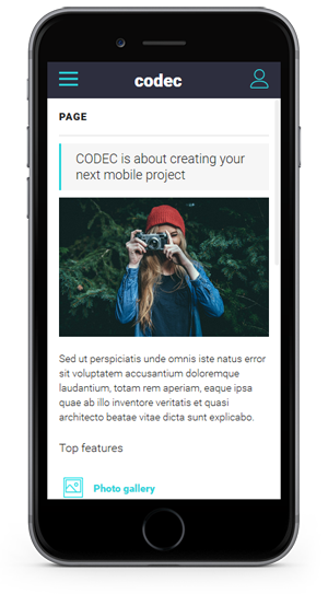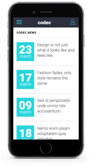 Codec is an HTML mobile template created for a mobile website, web app, and integrated with solutions like phonegap, for a real native app. It is build using an original design concept, some amazing animations for elements and a perfect responsive code.
