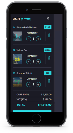 The LEFT panel contains the shopping cart layout. Using this structure you can create your own real shop.